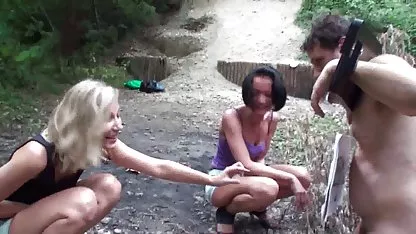 Moški v skupini seks blondinka in zrela brineta v enem članu